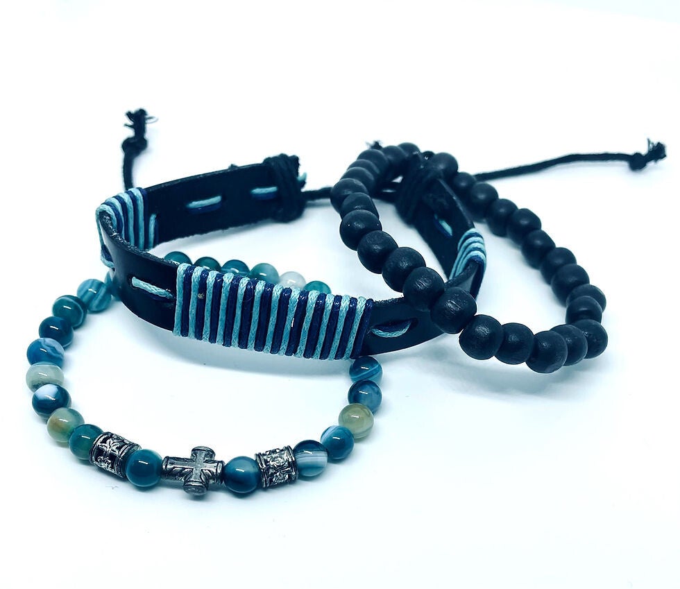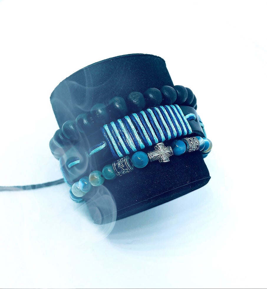 Deze set in een elegante blauw-zwart kleurenschema bevat onder andere een armband met kristal blauw agaat, die niet alleen een indrukwekkende uitstraling heeft, maar ook een toevoeging aan je outfit biedt.