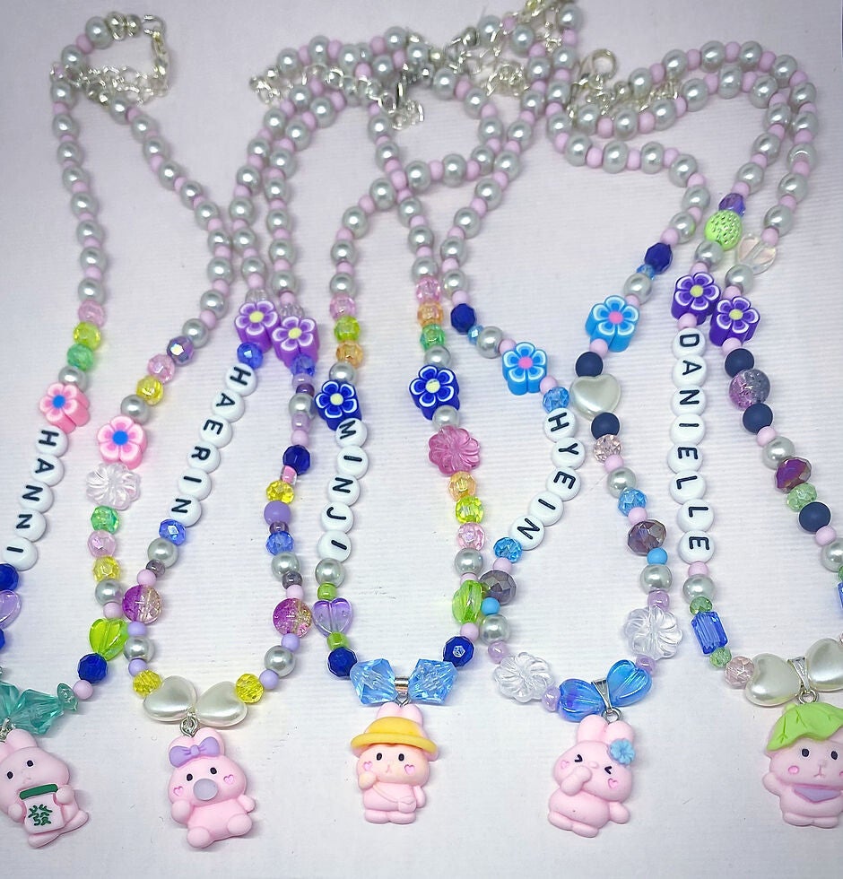 Ontdek onze unieke handgemaakte Bunny ketting, geïnspireerd door de Kpop groep New Jeans en hun leden Minji, Hanni, Danielle, Haerin en Hyein. Een must-have accessoire voor alle fans van de groep en liefhebbers van schattige en trendy sieraden. Bestel nu en voeg een vleugje Kpop stijl toe aan je outfit!