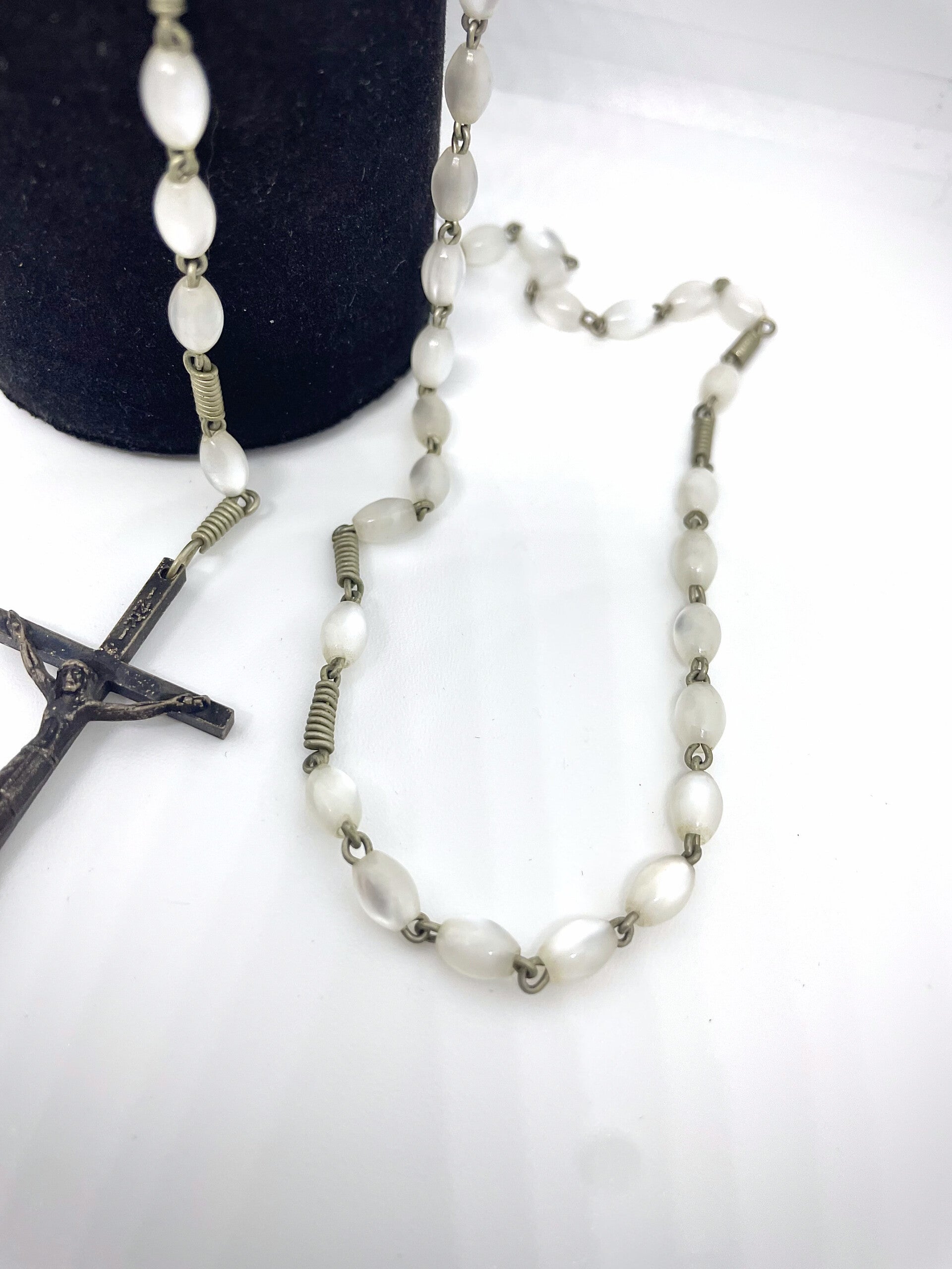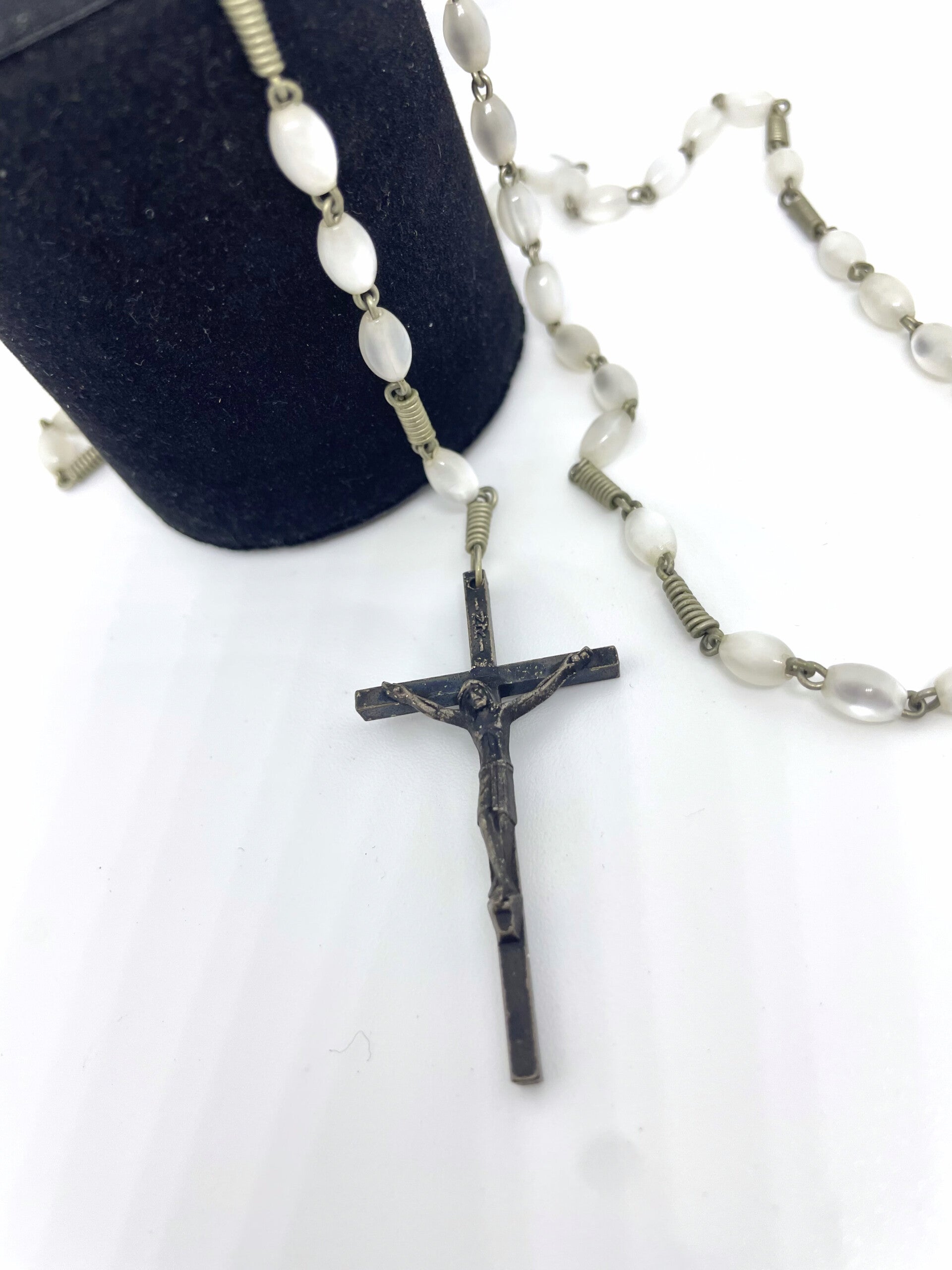 Discover our beautiful Italian vintage antique rosary, powerful with delicate mother-of-pearl beads that offer timeless charm and elegance. Perfect as a unique piece of jewelry or a spiritual gift, this rosary combines authentic craftsmanship with a refined aesthetic. Add a touch of historical elegance to your collection and experience the beauty of Italian craftsmanship with this unique vintage rosary.