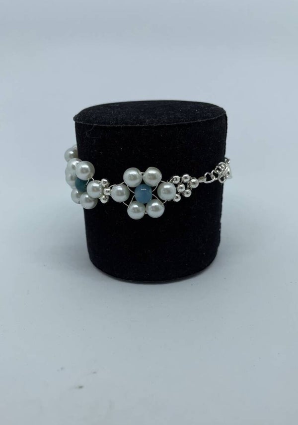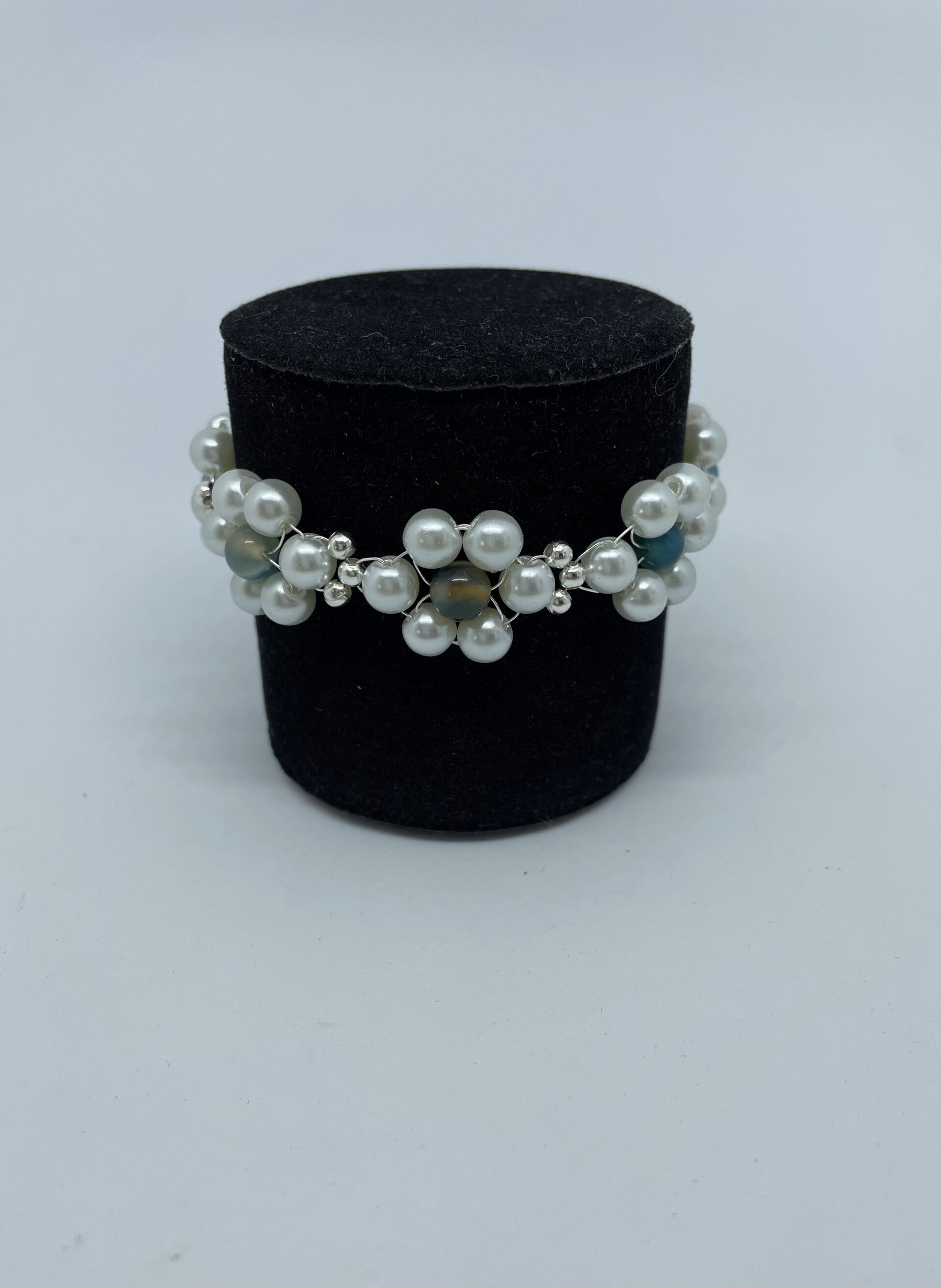Introducing our handmade Daisy Peacock Agate bracelet, featuring a beautiful daisy pattern crafted from glass beads and stunning blue Peacock Agate gemstones. Each piece is carefully wrapped with high-quality silver wire, ensuring durability and elegance. The adjustable design ensures a perfect fit on any wrist, making it the perfect accessory for any outfit and a must-have for any jewelry collection. Add a touch of nature-inspired beauty to your look with this unique and striking bracelet. Handmade with love and attention to detail, this Daisy Peacock Agate bracelet